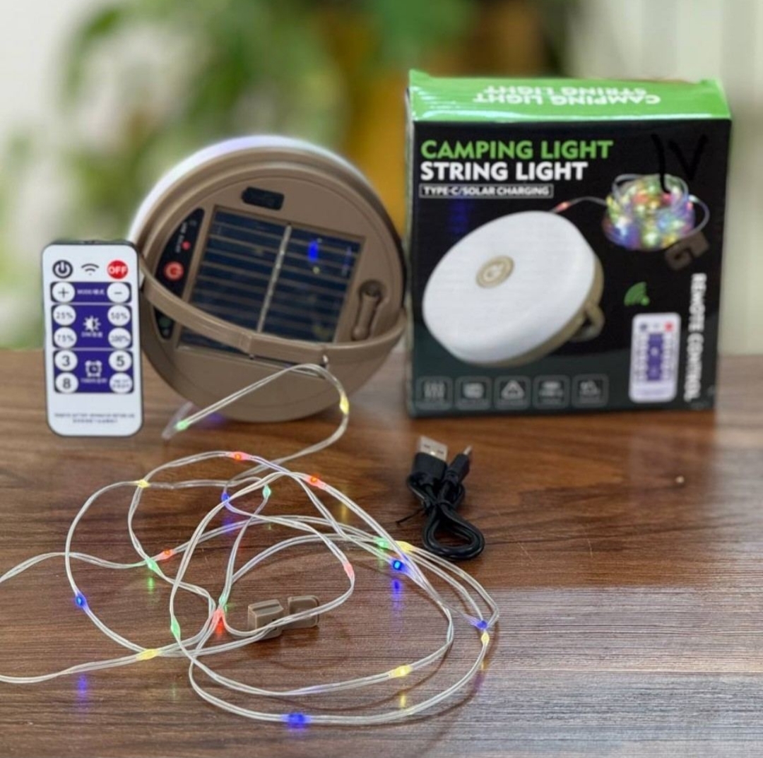 این چراغ کمپینگ دارای چندین حالت کاری مختلف است که میتوانید آن را با فشردن دکمه تغییر دهید. مزیت اصلی این چراغ ریسه دار به سایر نمونه های مشابه دارای ریموت بودن آن است. این ریموت می تواند شدت نور ، مد کاری و تایمر را کنترل کند. همچنین برای خاموش و روشن کردن دیگر نیازی به لمس دکمه پاور روی دستگاه نخواهید داشت . البته تمامی این امکانات با استفاده از دکمه های روی چراغ نیز قابل انجام است . ریسه ها RGB هستند که درسه حالت نور ثابت ، تغییر رنگ و چشمک زن می توانید آن ها را روشن کنید . نور چراغ آفتابی است و دارای سه شدت نور مختلف است. چراغ دارای یک حالت چشمک زن با چراغ های قرمز رنگ است که در مواقع اضطراری می توانید از آن استفاده کنید. دسته ای که در پشت چراغ تعبیه شده است برای آویزان کردن چراغ و همچنین تکیه دادن و حمل دستی آن مورد استفاده قرار میگیرد . چراغ دارای یک پنل خورشیدی می باشد که در زمان هایی که به برق دسترسی ندارید نیز بتوانید از آن استفاده کنید ، این چراغ بصورت ضد آب ساخته شده است تا در مقابل باران نیز مقاوم باشد.